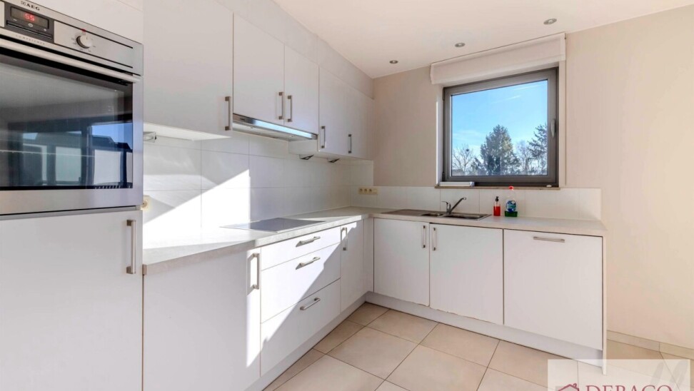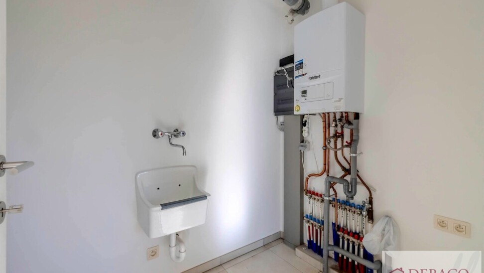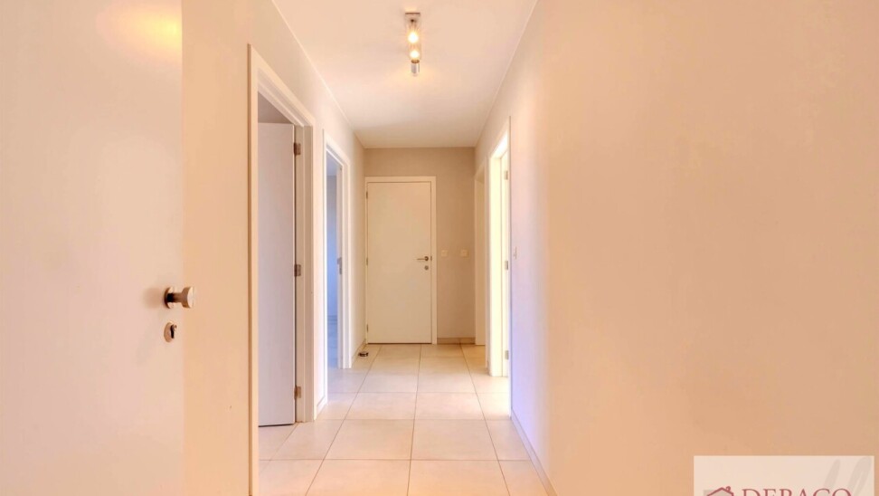 Het appartement bestaat uit een inkomhal, een lichtrijke woonkamer, volledig ingerichte keuken, praktische berging, apart gastentoilet, moderne badkamer en twee volwaardige slaapkamers.