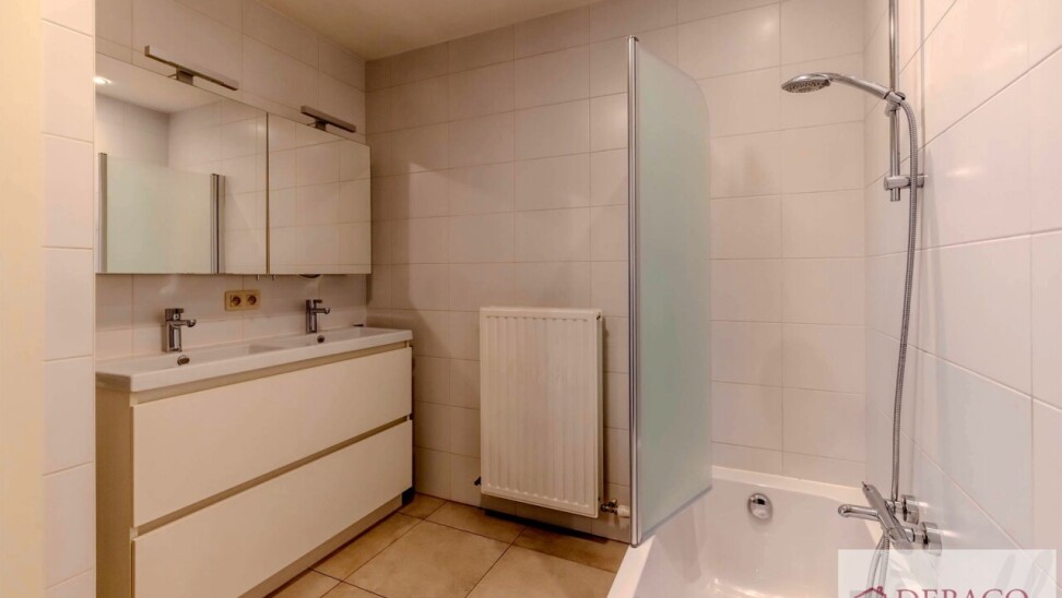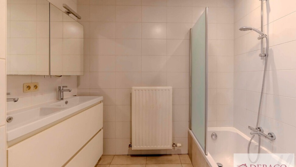Het appartement bestaat uit een inkomhal, een lichtrijke woonkamer, volledig ingerichte keuken, praktische berging, apart gastentoilet, moderne badkamer en twee volwaardige slaapkamers.
