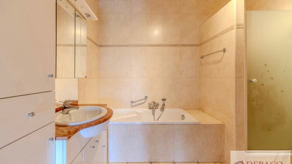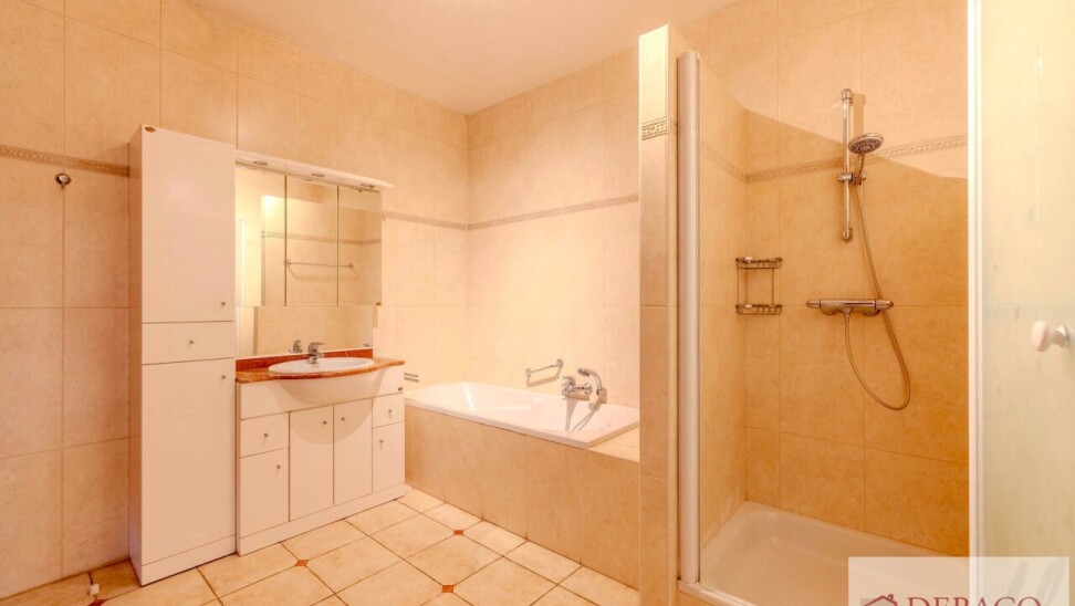 Het appartement beschikt over een inkomhal, een ruime woonkamer, ruime ingerichte keuken ,drie ruime slaapkamers, een badkamer (met douche, bad & lavabo), apart toilet, bergruimte & een ruim terras.
