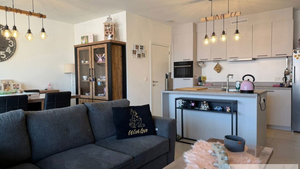 Dit appartement bestaat uit een inkomhal, open keuken, berging/wasplaats, woonkamer, gastentoilet, badkamer (voorzien van douche en dubbele wastafel), twee ruime slaapkamers, overdekt terras, kelderberging en ondergrondse garagebox.