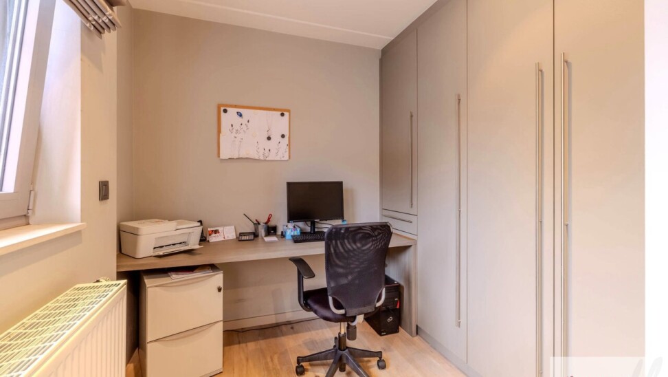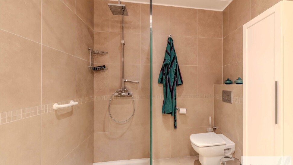 De eerste slaapkamer is voorzien van een tegelvloer en een badkamer die is uitgerust met een bad en lavabo. De tweede slaapkamer is voorzien van parketvloer met bureauruimte, een aparte dressing en een afzonderlijke badkamer met een inloopdouche, dubbele lavabo en een toilet aanwezig.