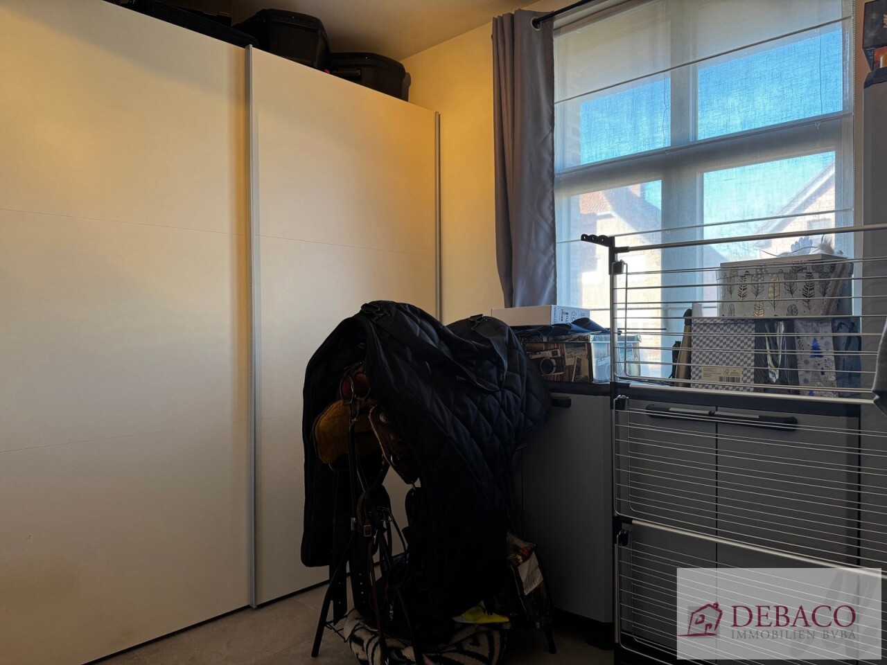 Dit appartement bestaat uit een inkomhal, woonkamer, keuken, berging/wasplaats, gastentoilet, badkamer, twee slaapkamers, tuin en carport. Het geheel is voorzien van vloerverwarming en werd afgewerkt met de betere materialen.