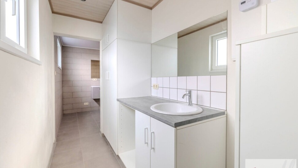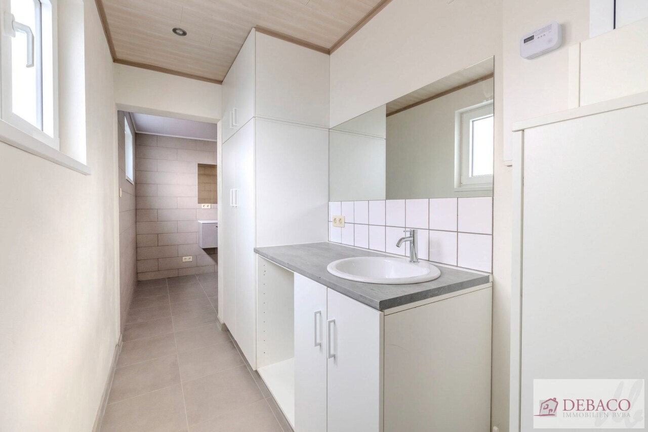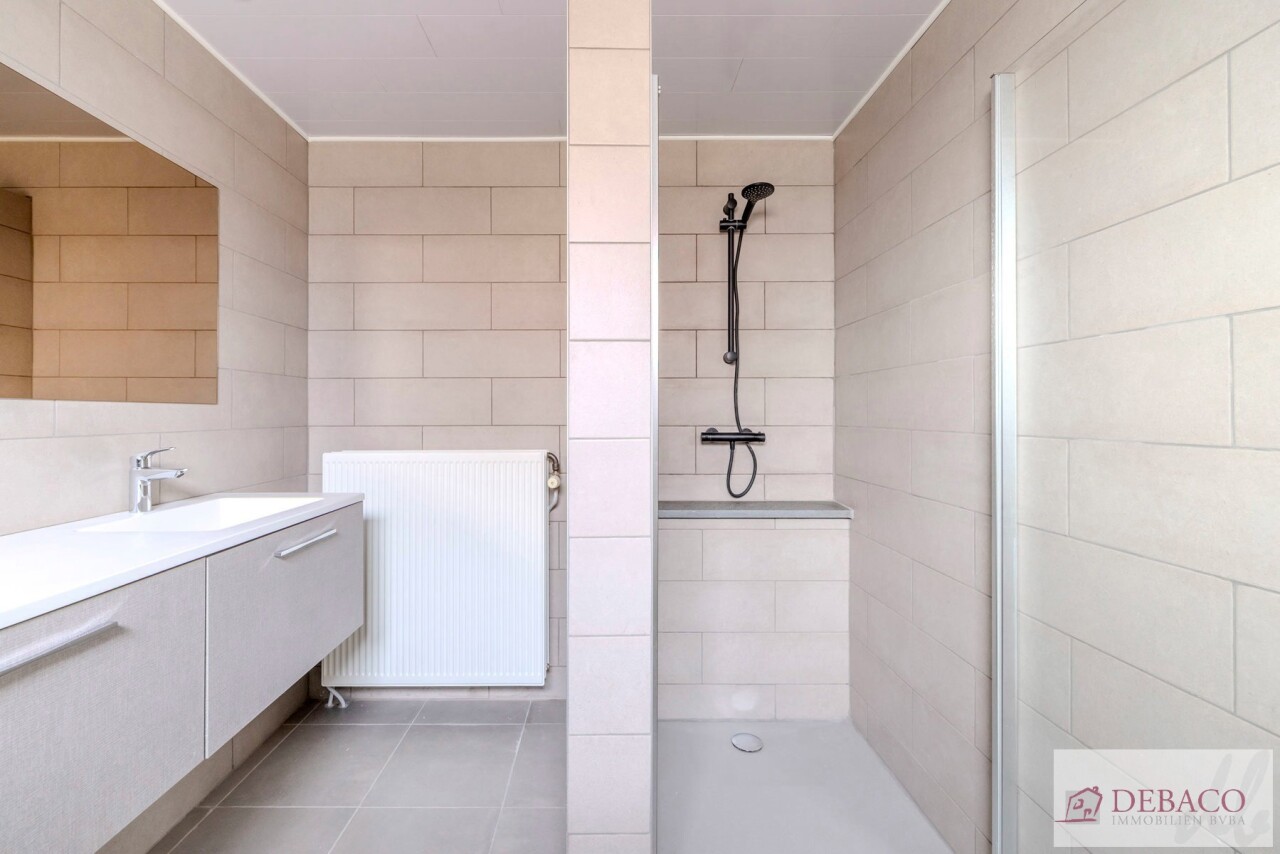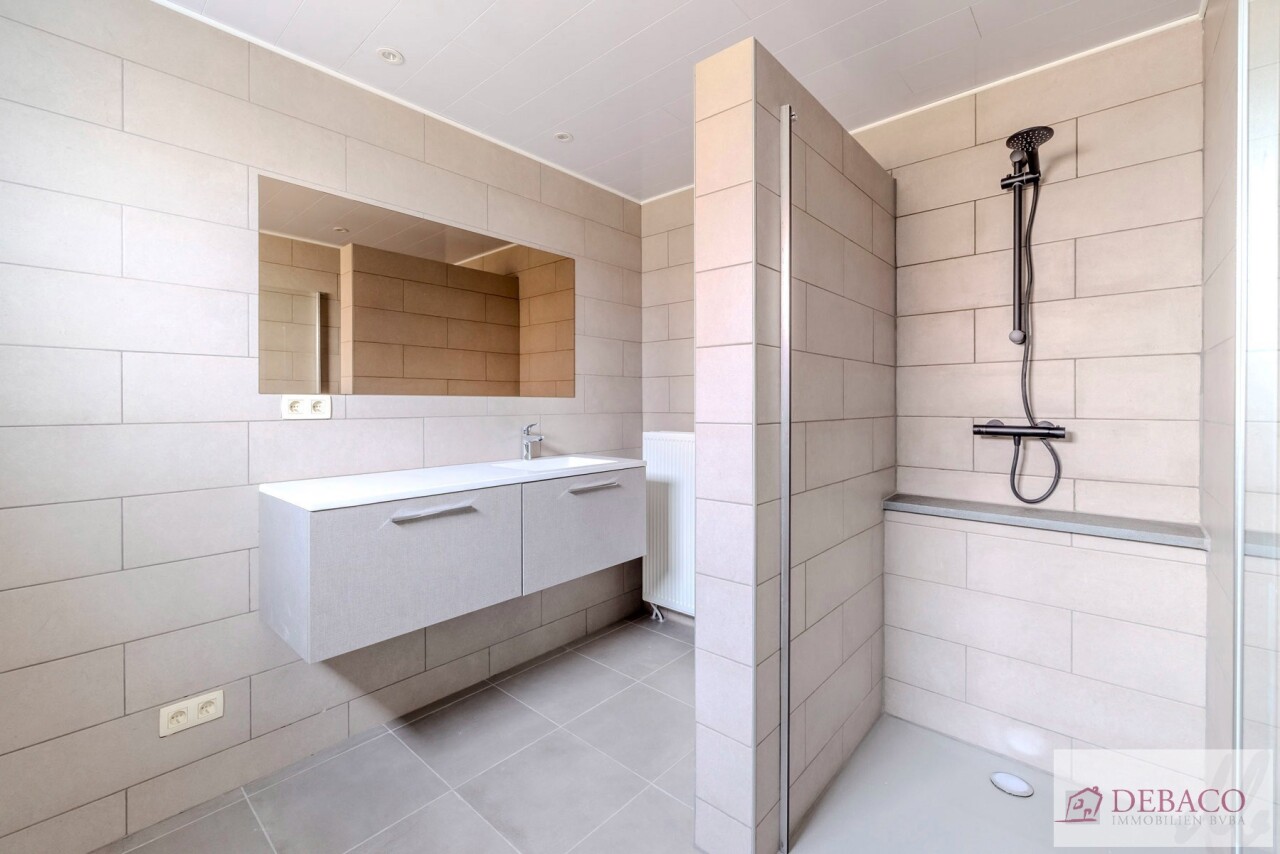 Deze woning bestaat uit een mooie lichtrijke leefruimte, een moderne geïnstalleerde keuken, een wasberging, een toilet, een mooie badkamer met lavabo en douche, 3 volwaardige slaapkamers met nog een lavabo en toilet. Verder is er ook nog een berging, een dressing en een kelder aanwezig. Buiten geniet u van een groot en aangenaam terras!