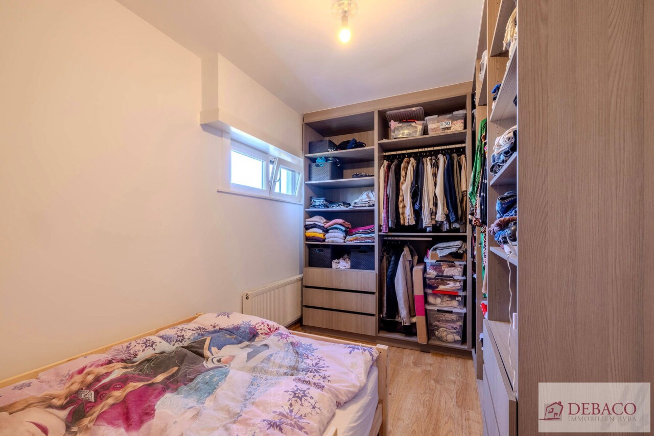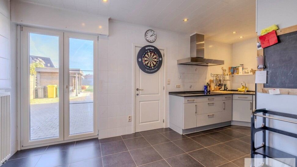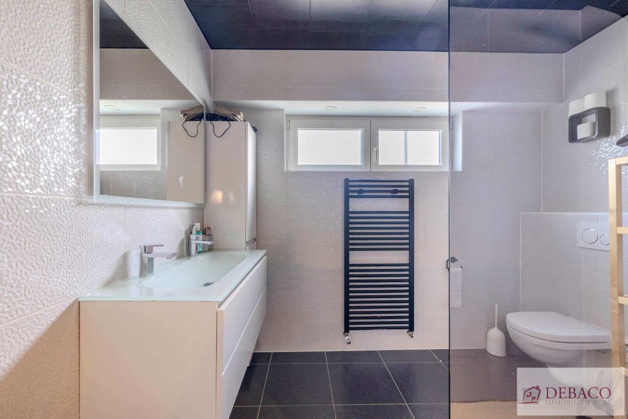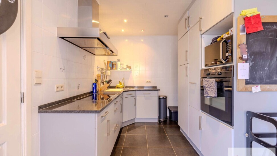 Binnenin wordt u verwelkomd in de inkomhal die uitgeeft op een mooie en aangename leefruimte. Vanuit de leefruimte krijgt u toegang tot de volledig geïnstalleerde keuken. Naast de keuken is er ook nog een zeer praktische bergruimte aanwezig. Verder is er op het gelijkvloers nog een apart gastentoilet, een functionele bureauruimte en een zeer handige wasberging met nog een douchecabine aanwezig.