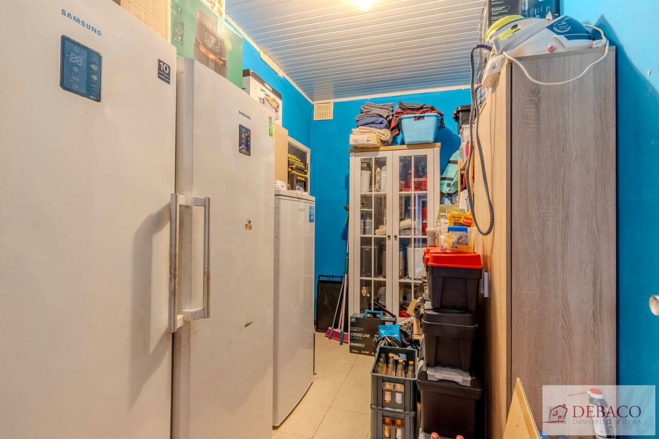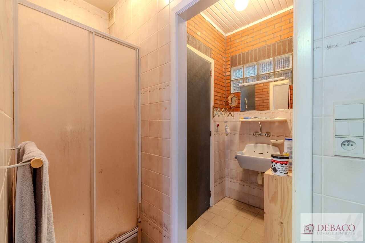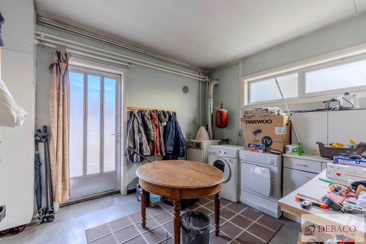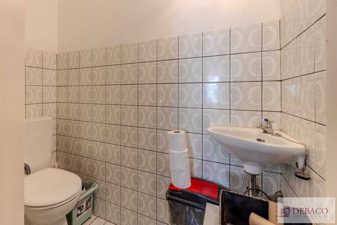 Deze woning bestaat uit een inkomhal die toegang geeft tot de ruime leefruimte met een aansluitende keuken, praktische berging met toegang naar de kelder, een wasruimte met aparte douche en een apart gastentoilet. Vanuit de keuken krijgt u toegang tot de aangename koer. Verder bestaat de woning op de eerste verdieping uit 3 ruime slaapkamers, een kleine berging, een badkamer & een apart toilet.