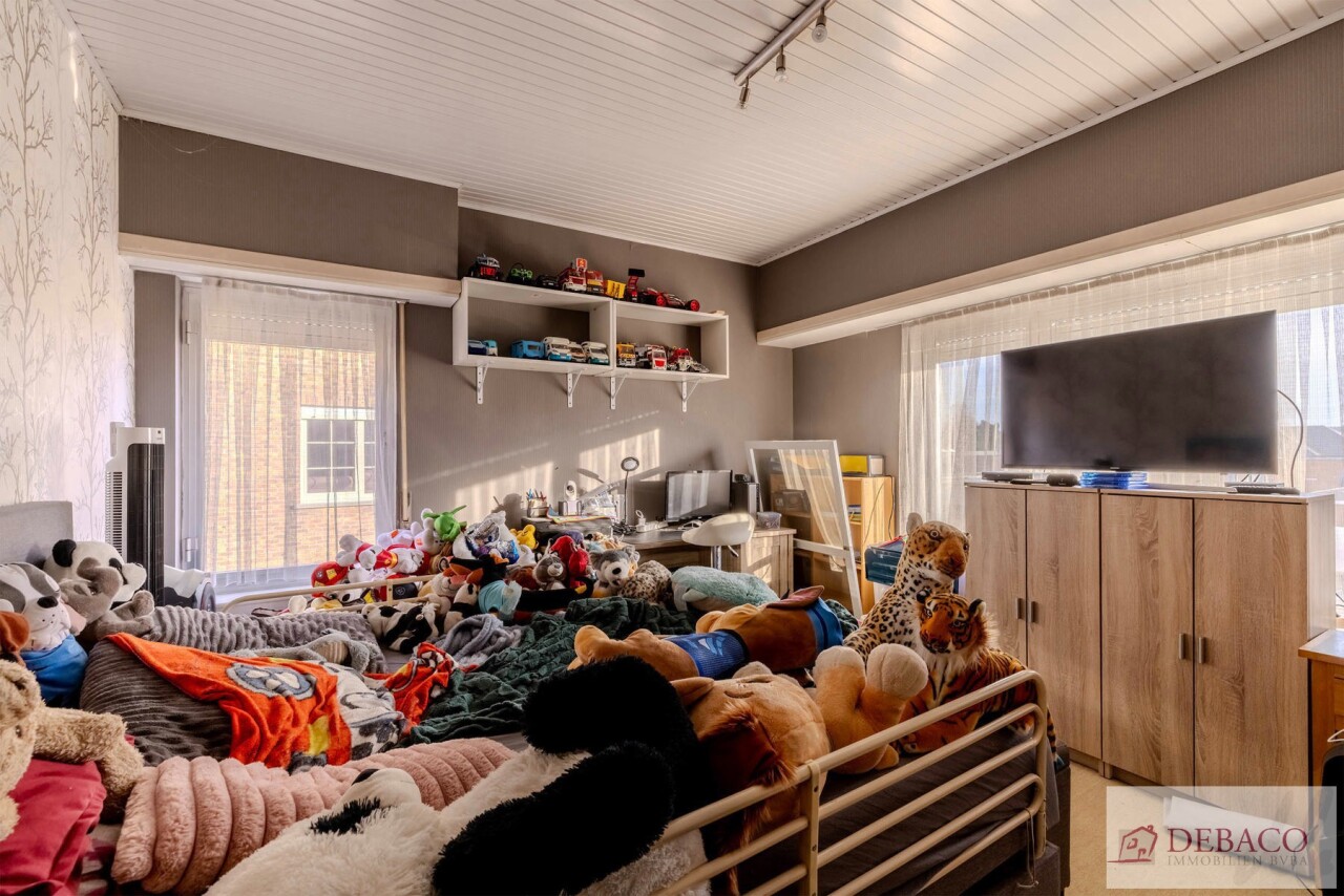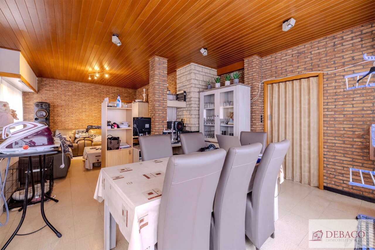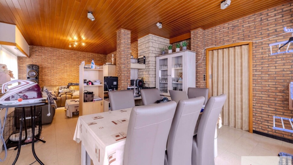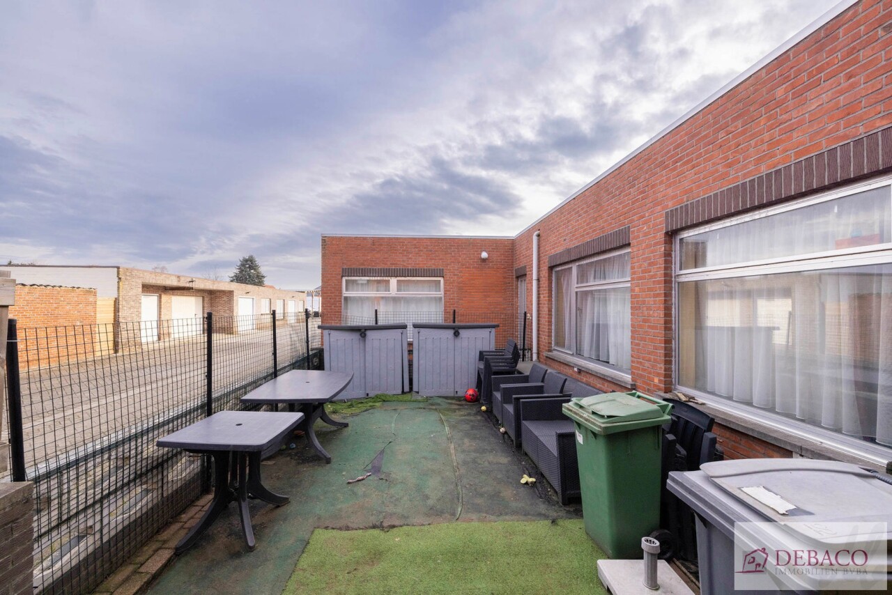 Deze woning bestaat uit een inkomhal die toegang geeft tot de ruime leefruimte met een aansluitende keuken, praktische berging met toegang naar de kelder, een wasruimte met aparte douche en een apart gastentoilet. Vanuit de keuken krijgt u toegang tot de aangename koer. Verder bestaat de woning op de eerste verdieping uit 3 ruime slaapkamers, een kleine berging, een badkamer & een apart toilet.