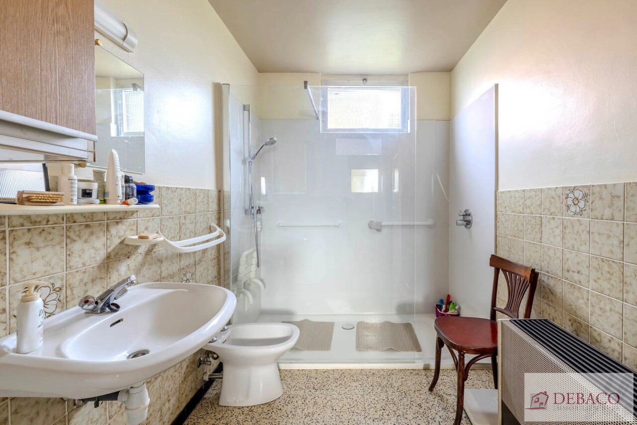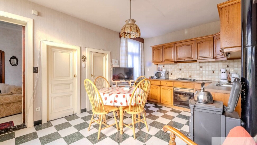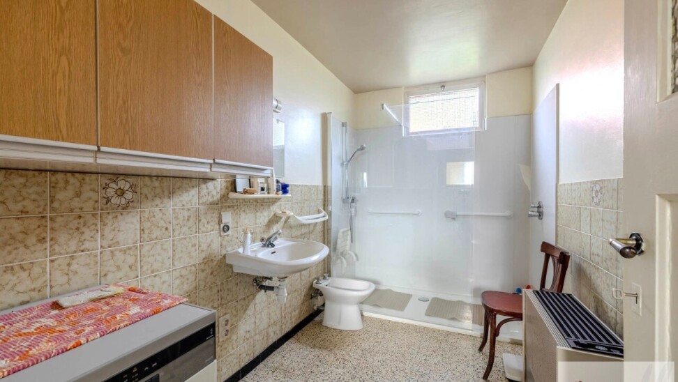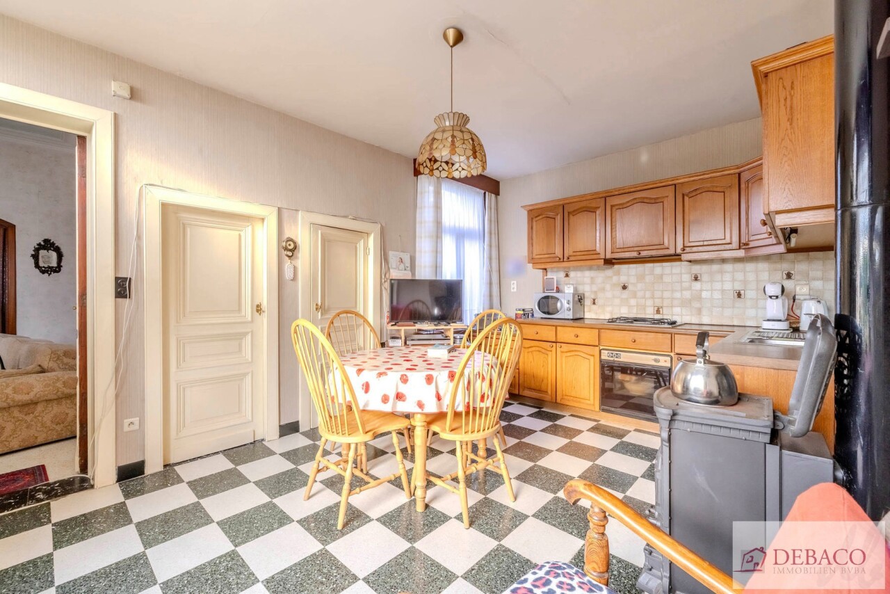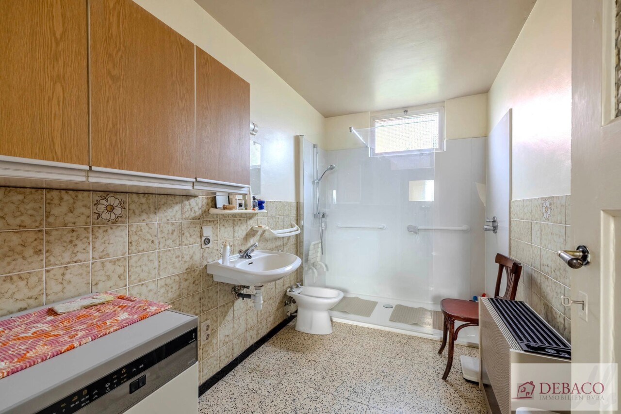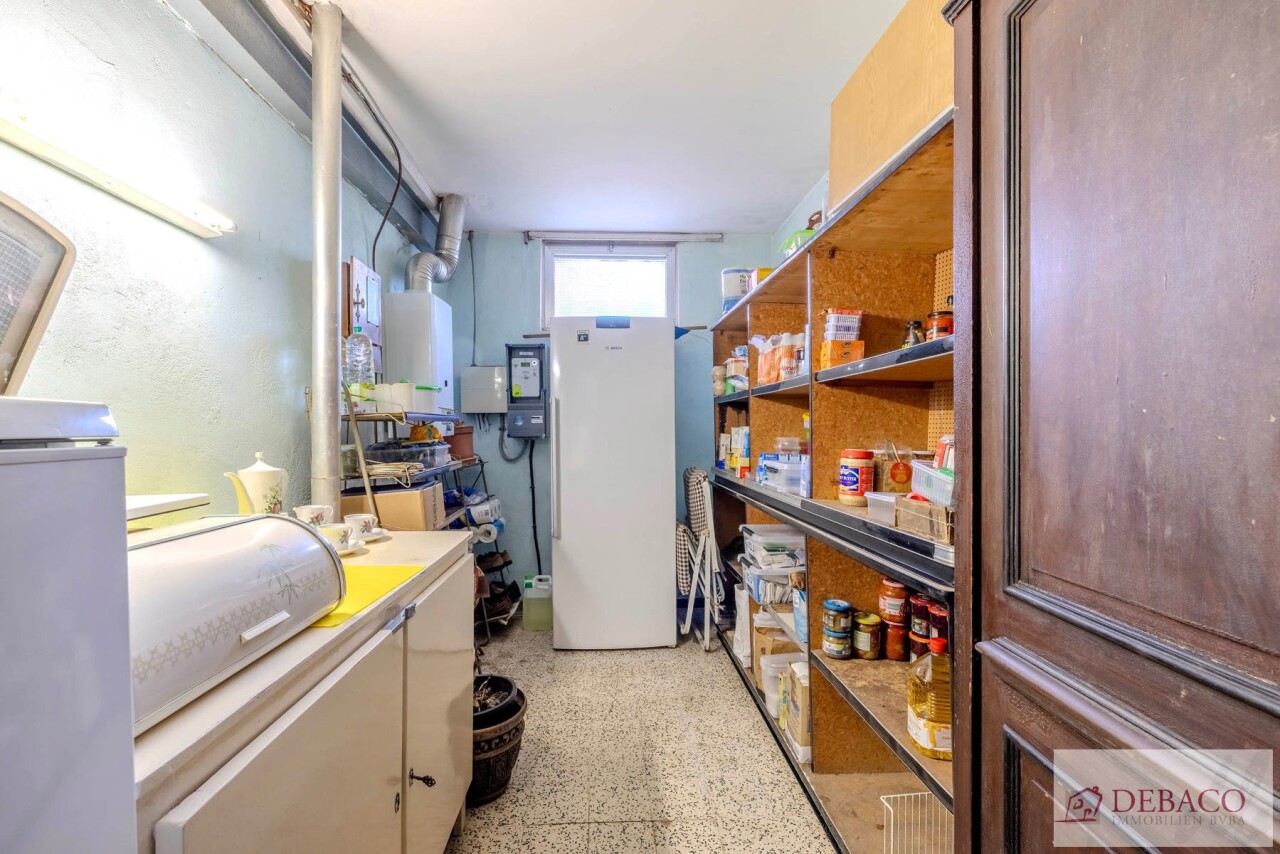 We betreden deze karaktervolle woning langs de authentieke inkomhal op prachtige tegelvloer. De inkomhal geeft meteen uitgeeft op de ruime en mooie leefruimte met hoge plafonds. Deze leefruimte staat in directe verbinding met de ingerichte keuken. Vanuit de keuken krijgt u toegang tot de kelder en een naastgelegen praktische berging. Op het gelijkvloers bevindt zich nog een badkamer met een ruime inloopdouche en een grote aparte bergkamer. Achteraan de woning ontdek je een grote polyvalente ruimte met enorm potentieel. Deze ruimte is dan ook rechtstreeks toegankelijk vanuit de tuin en kan perfect ingericht worden als werkplaats, hobbyruimte of atelier.