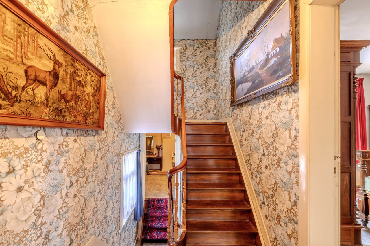 Op de tussenverdieping van deze woning bevindt zich een charmante kamer die ideaal kan worden gebruikt als slaapkamer of bureauruimte.